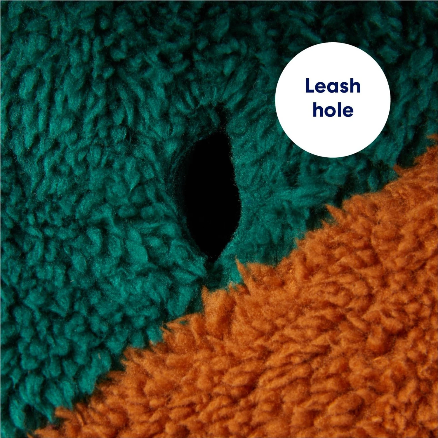 Remember to measure your pet for the perfect fit. Your pet’s monochromatic days are over with this color-blocked fleece hoodie from Frisco by Chewy. The two-toned design also features a buttoned placket and hook-and-loop fastening at the neck, so it’s easily adjusted for getting off or putting on. There’s also elasticated ribbing at the sleeves and lower hem which contour to your pet’s body to trap in heat without restricting their full range of movement. It’s a casual, convenient way to keep them toasty that goes on quick and easy.