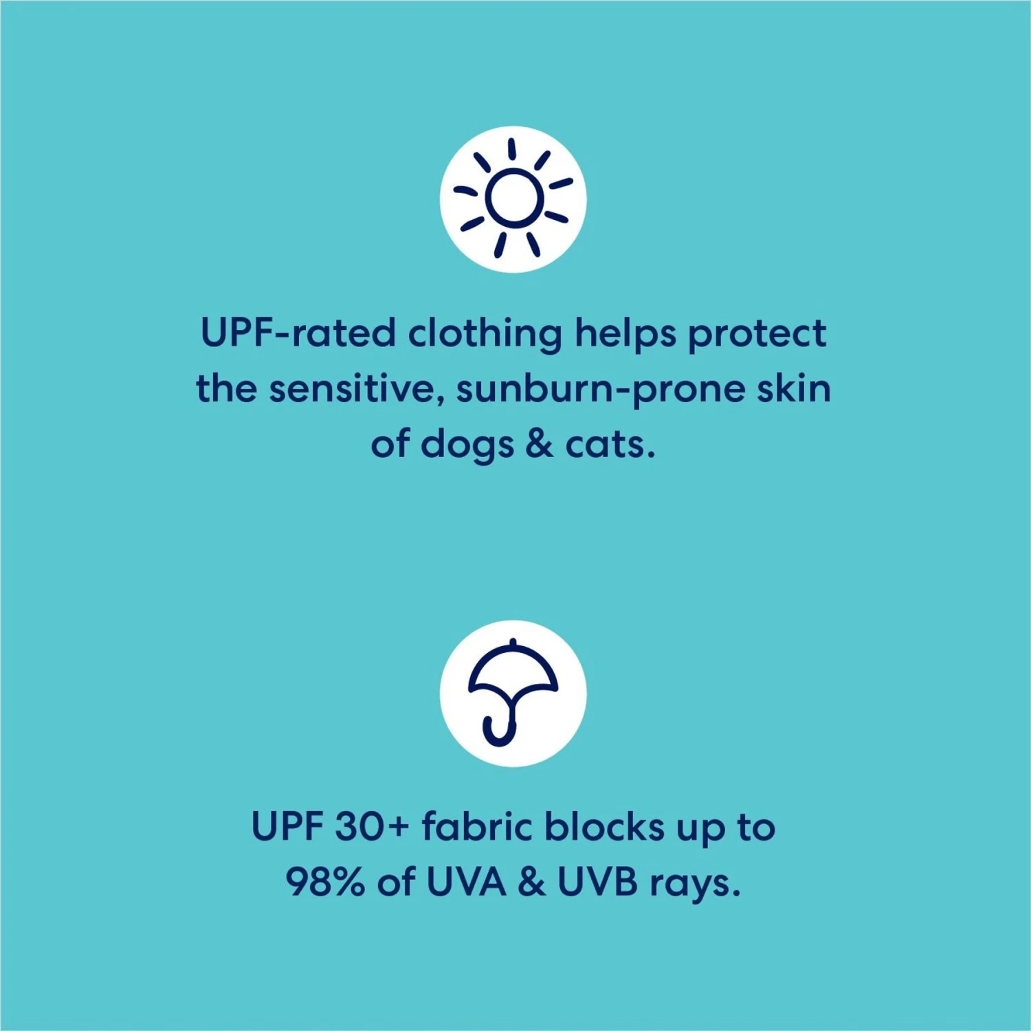 - The Ultraviolet Protection Factor (UPF) of the sun-protecting fabric blocks 98% of the harmful UVA/UVB rays, allowing sunburn-prone cats and dogs to enjoy the sunshine.
