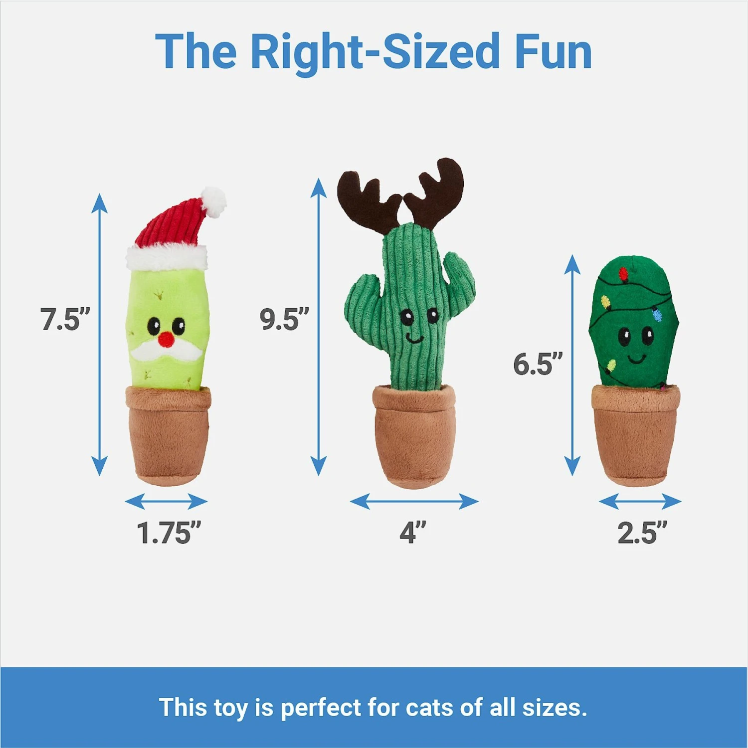 - Comes with three holiday styled cactus plush toys for three times the fun.