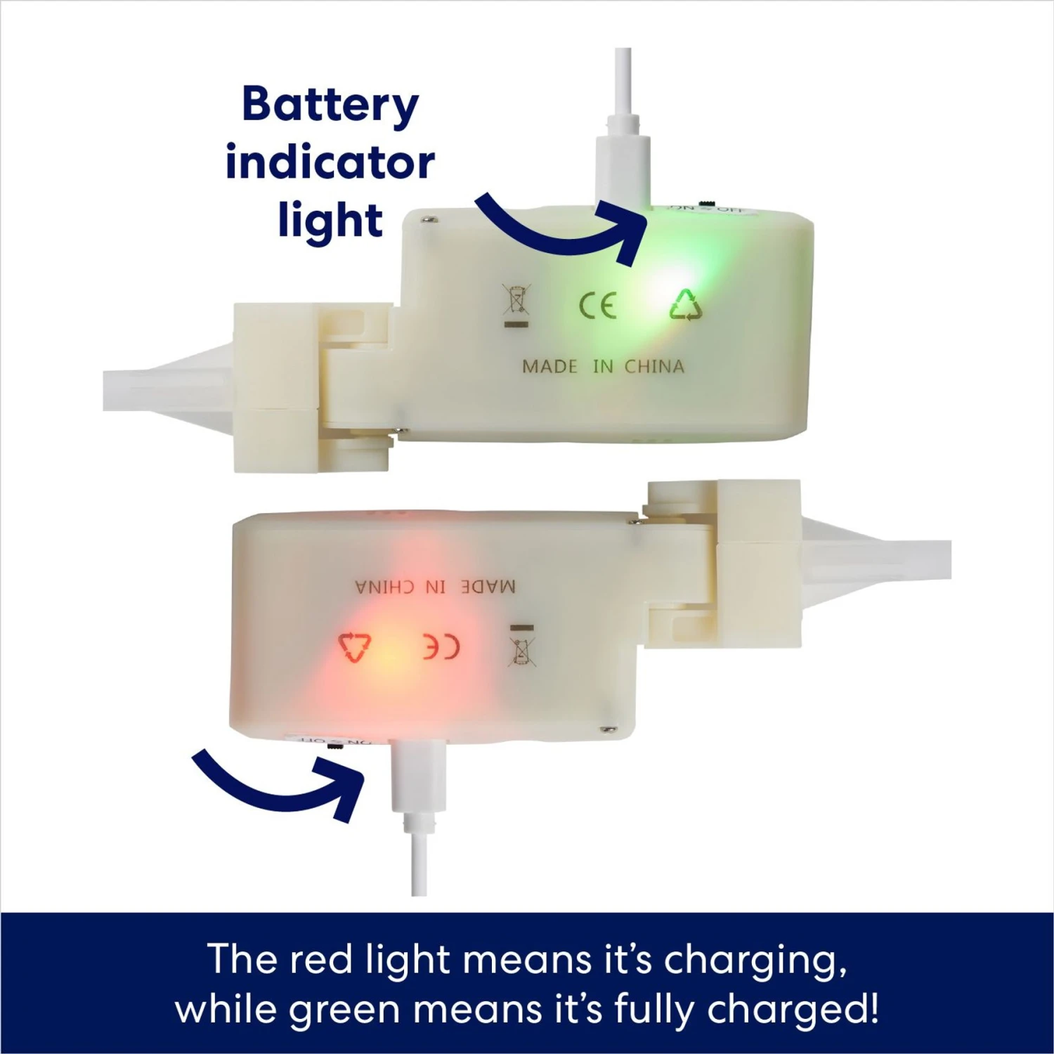 - The USB-rechargeable battery pack achieves a full charge in 90 minutes to keep your cat playing for an hour.