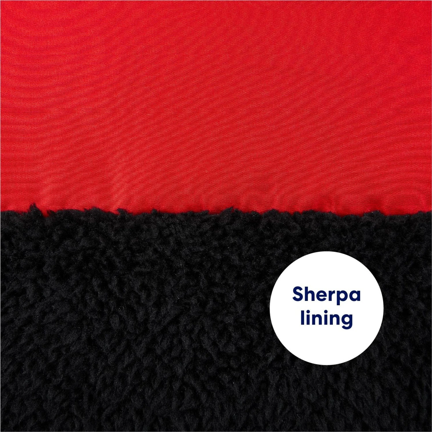 - Mediumweight coat with sherpa lining for added warmth and a bold design make for a highly stylish look that’s sure to get your pet noticed.