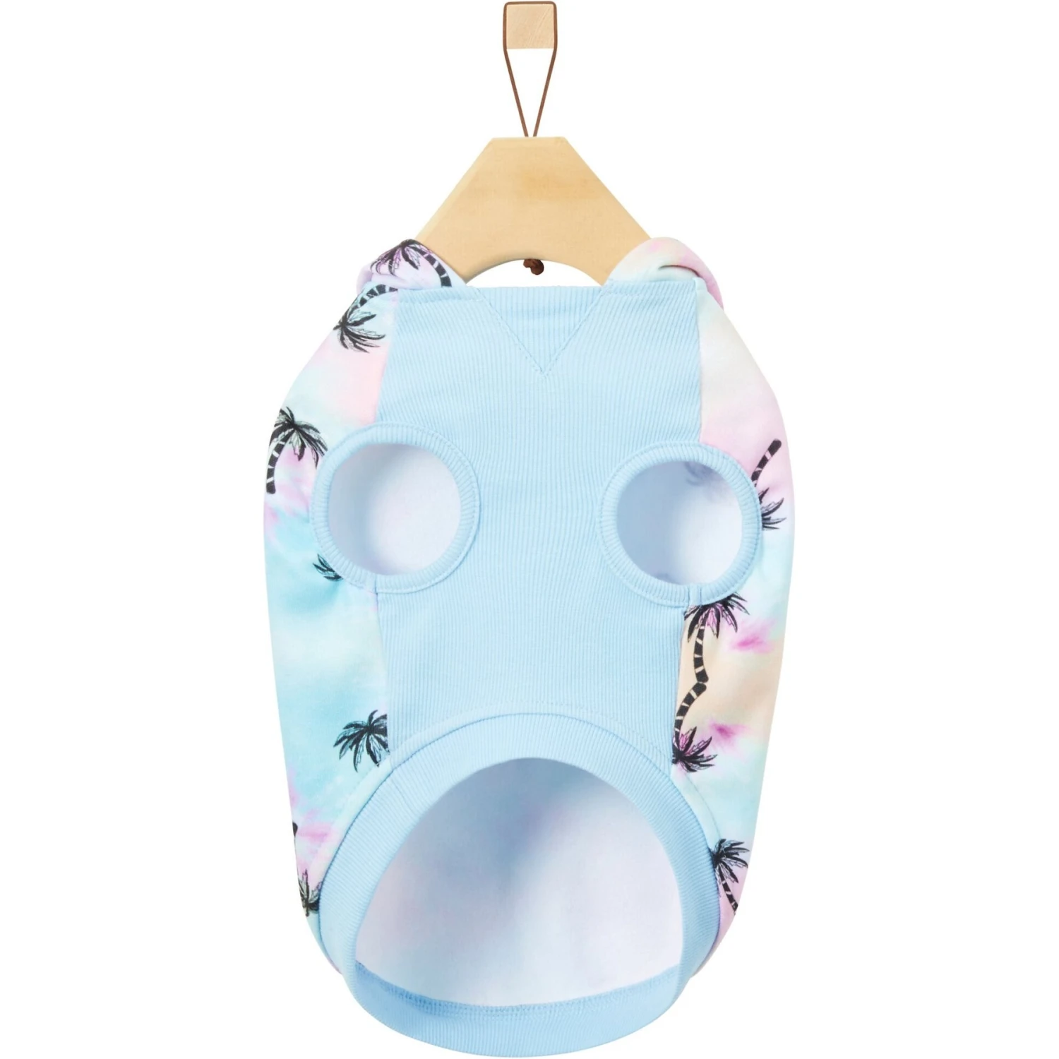 - Design features a blue tie-dye color scheme with plenty of palm trees, making it a cute staple for your petโs spring and summer wardrobe.