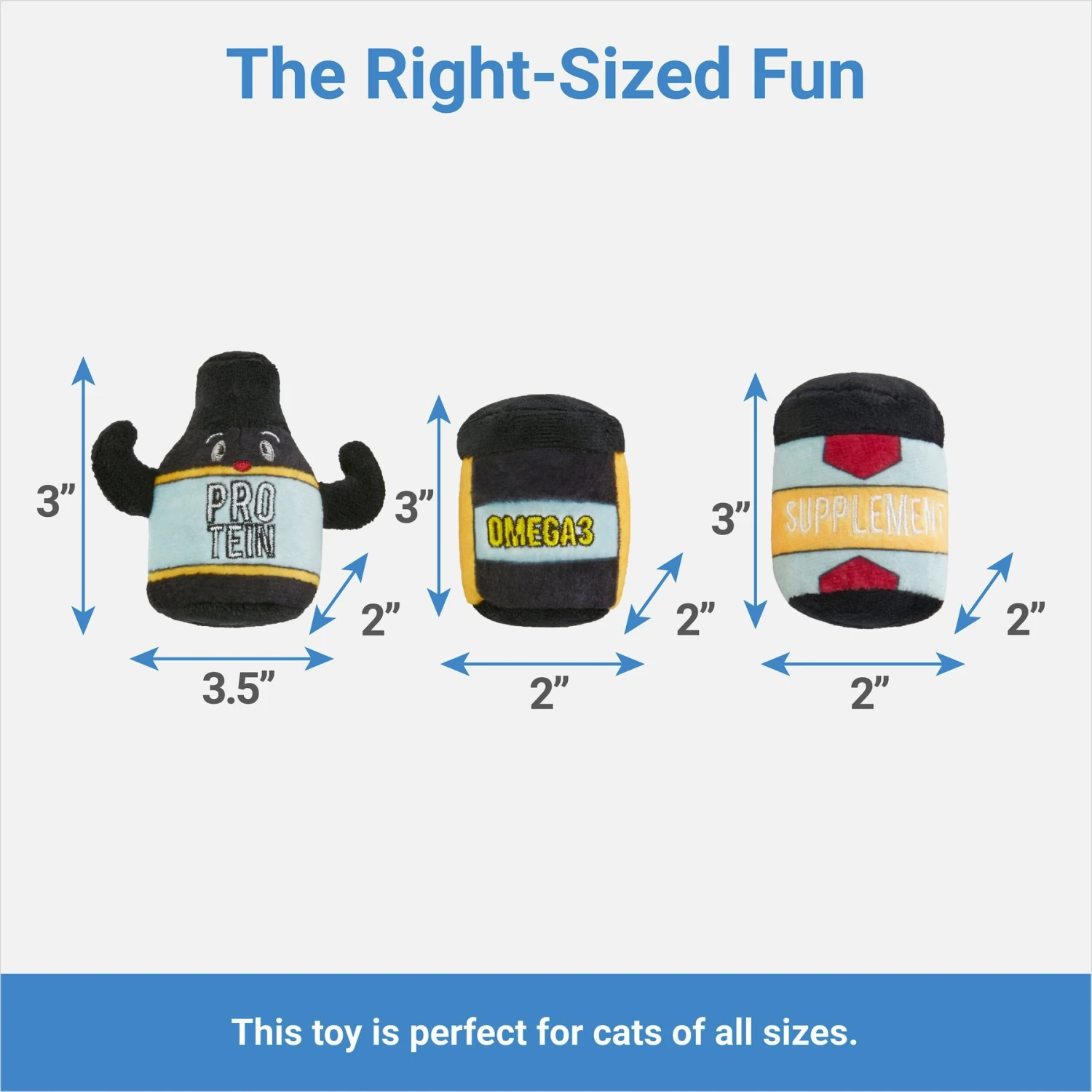 - Workout supplements plush cat toys include crinkle paper and catnip to really amp up playtime and get kitty moving.