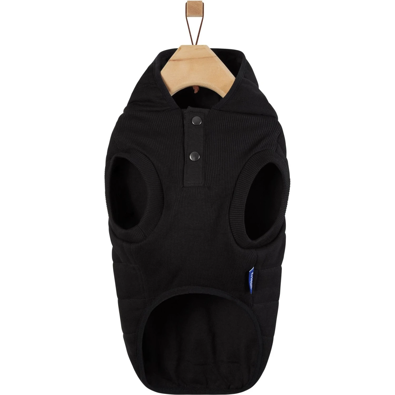 - The square-quilted texture and ribbed black trim of this pullover hoodie is lined with soft jersey to keep your pet comfortable and dressed to impress.
